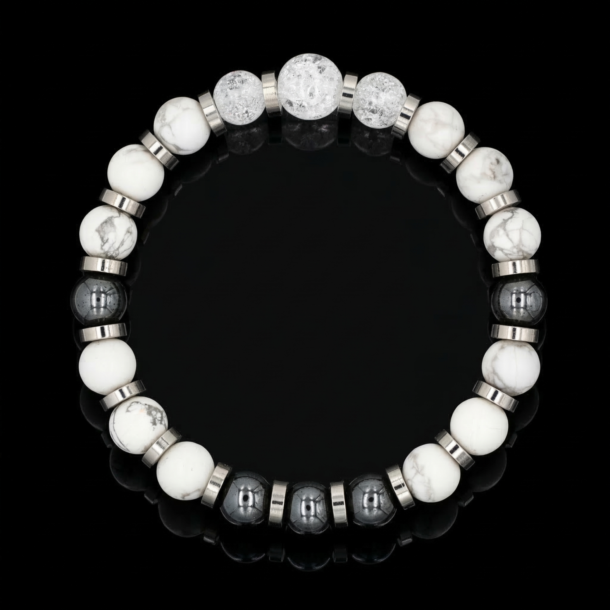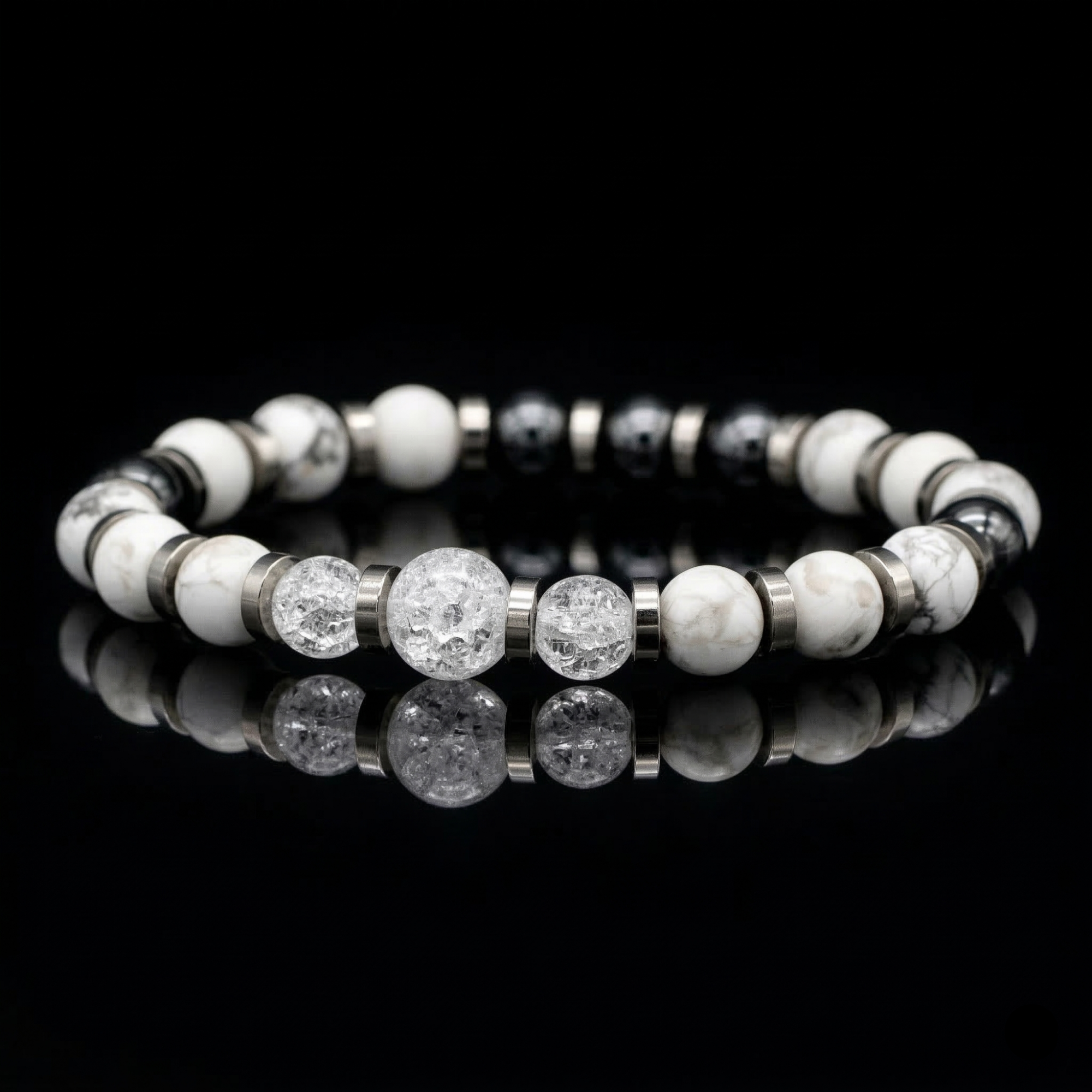 Howlite and Clear Quartz are renowned for their ability to foster concentration, improve memory, and promote open-minded thinking, making them ideal for students, educators, and creatives. Hematite grounds this energy, reinforcing resilience, discipline, and commitment to learning and self-improvement.