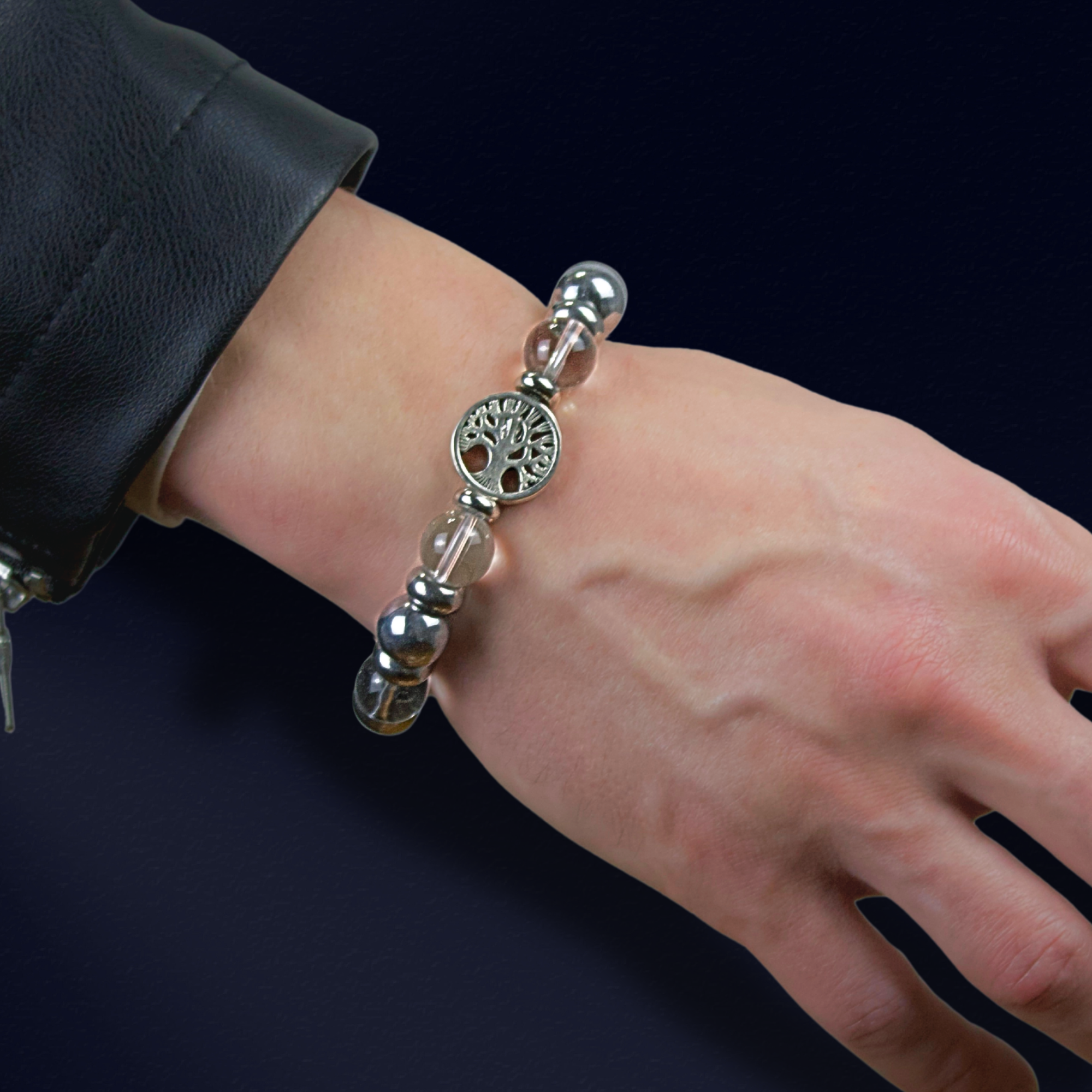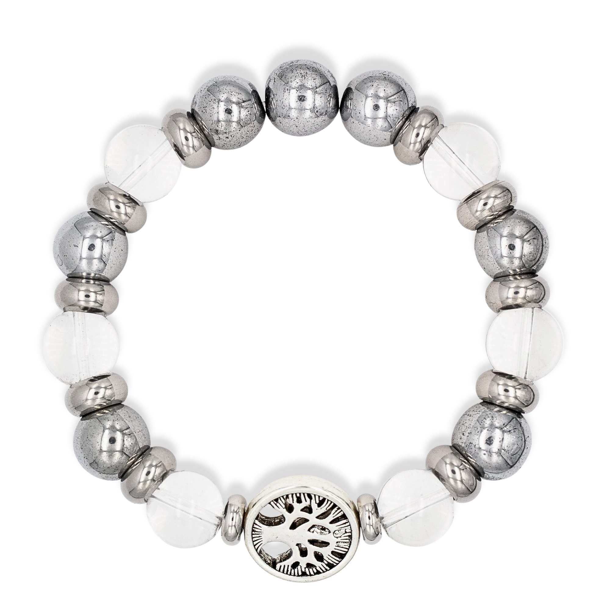 Men's Charm Bracelet for Focus, Protection & Growth with Clear Quartz, Hematite & Silver