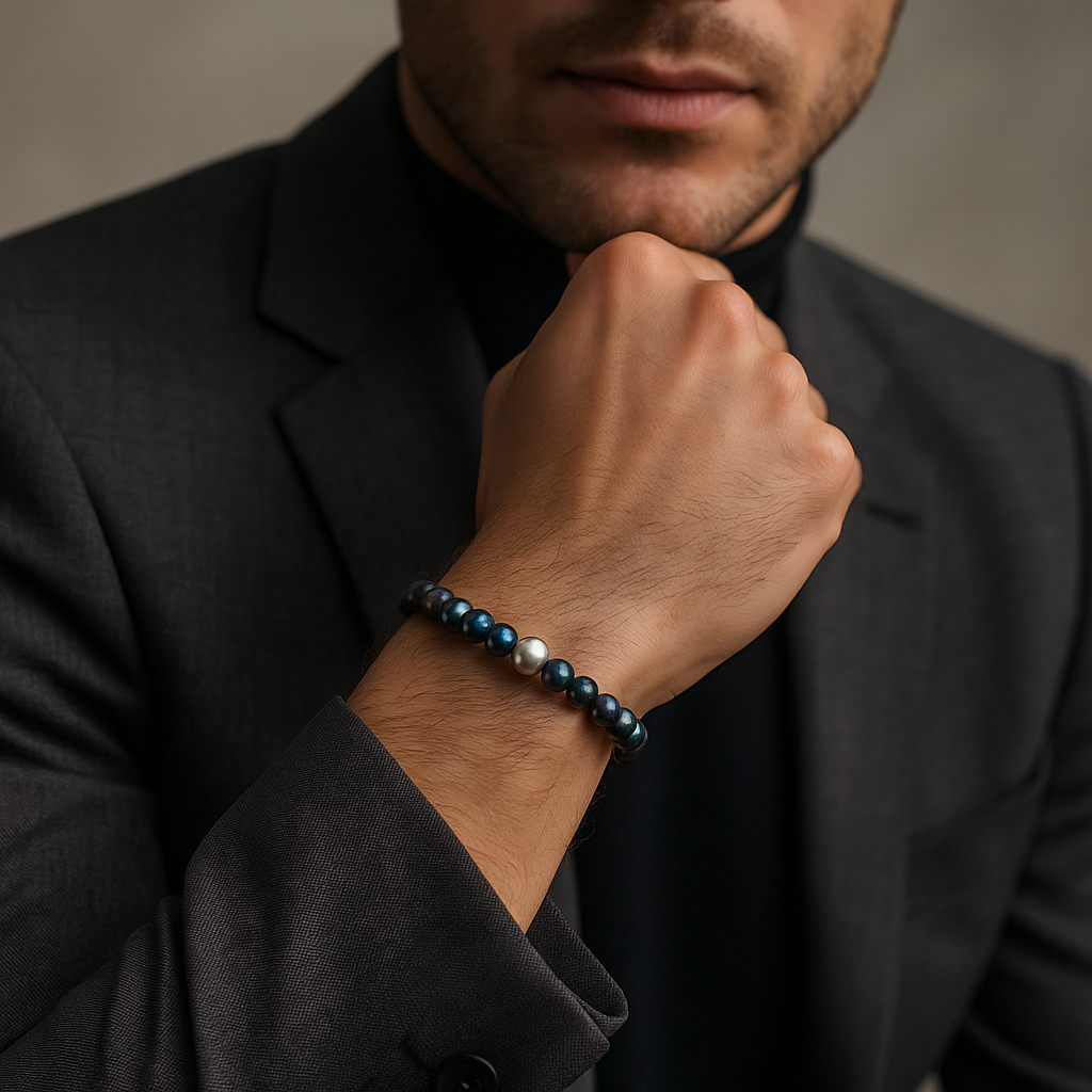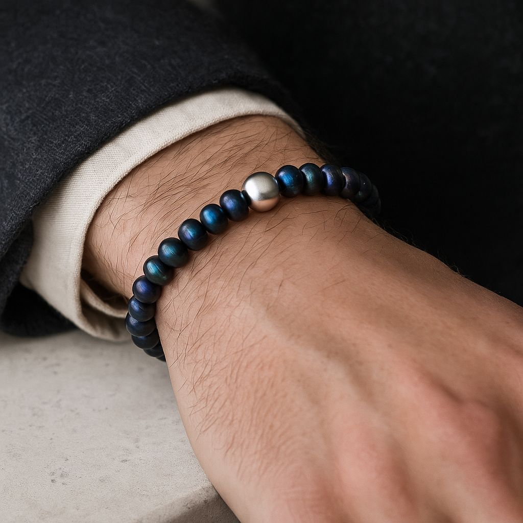 Embrace the energy of quiet strength with this handcrafted men's bracelet made of natural black pearls. Designed as a refined expression of grounded power and emotional control, this bracelet reflects an inner authority that requires no display. Subtle yet impactful, it’s a modern talisman for those who lead through presence, not words.