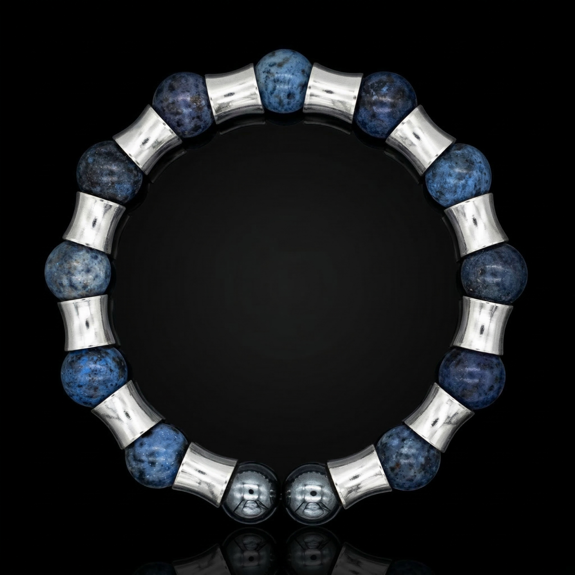 Experience the powerful combination of two distinguished natural stones in our meticulously handcrafted men’s bracelet. Hand-selected for their long-standing associations with focus, stability, and resilience, Dumortierite Blue and Hematite unite to create a statement piece of quiet strength and sophistication.