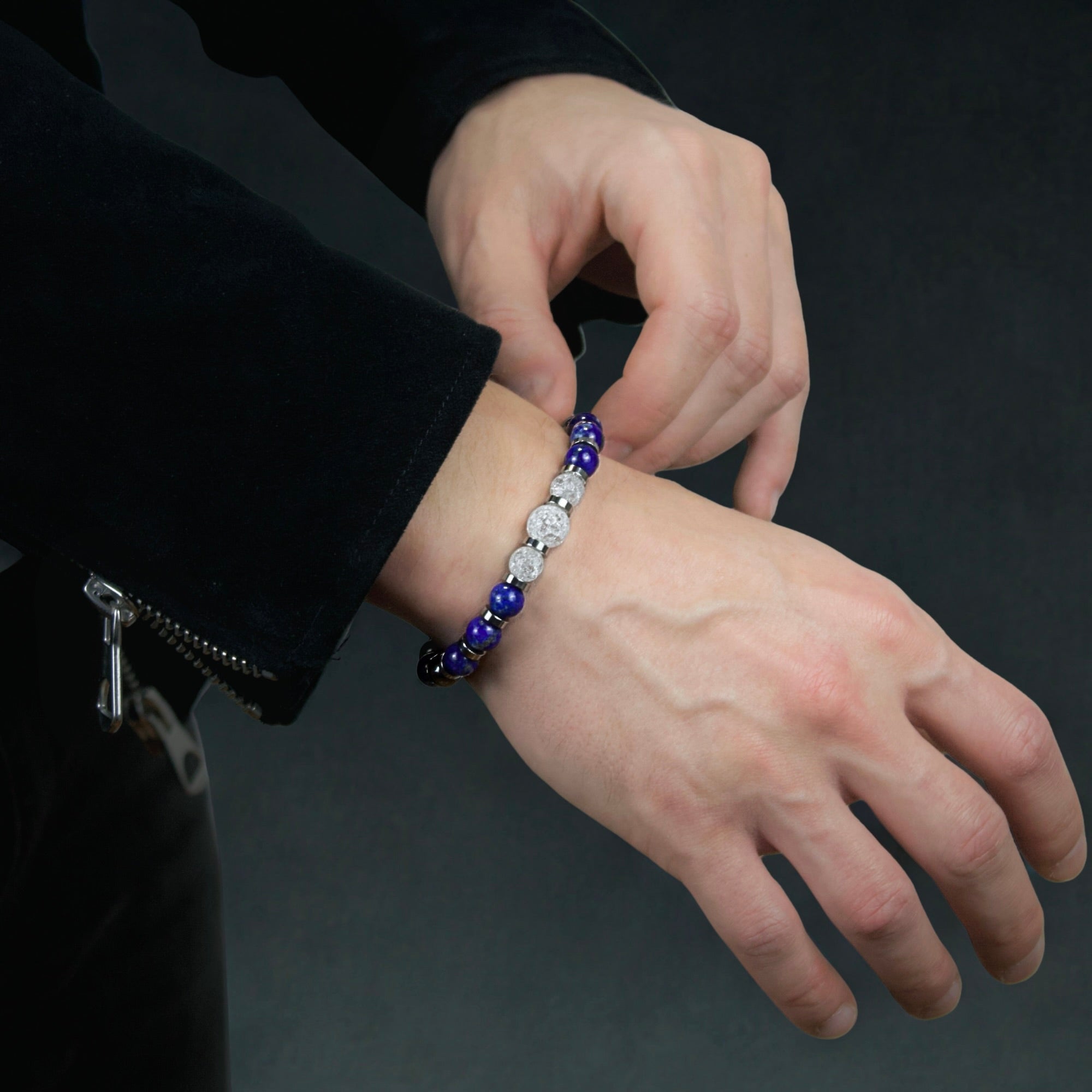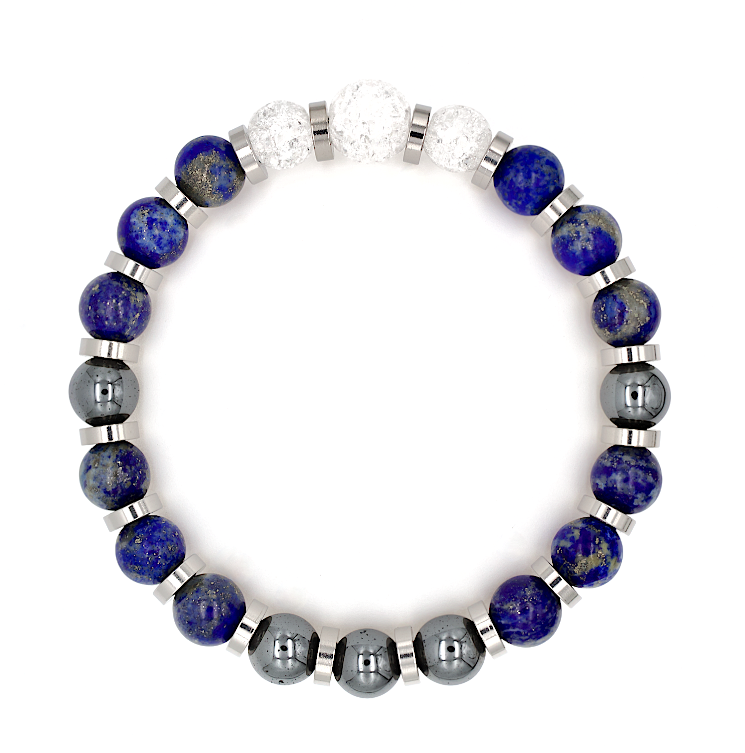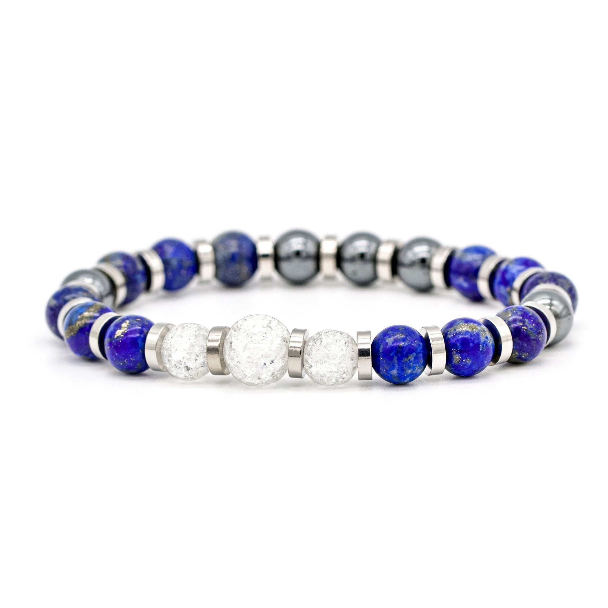 Featuring Clear Quartz, Lapis Lazuli, and Hematite, this bracelet harnesses the combined energy of these powerful gemstones. Clear Quartz promotes focus, organization, and confidence in achieving your goals. Lapis Lazuli, symbolizing heavenly power, enhances intuition, brings prosperity, and strengthens your will. Hematite amplifies your energy potential, supports career growth, and prevents impulsive decisions, helping you stay grounded and clear-minded.