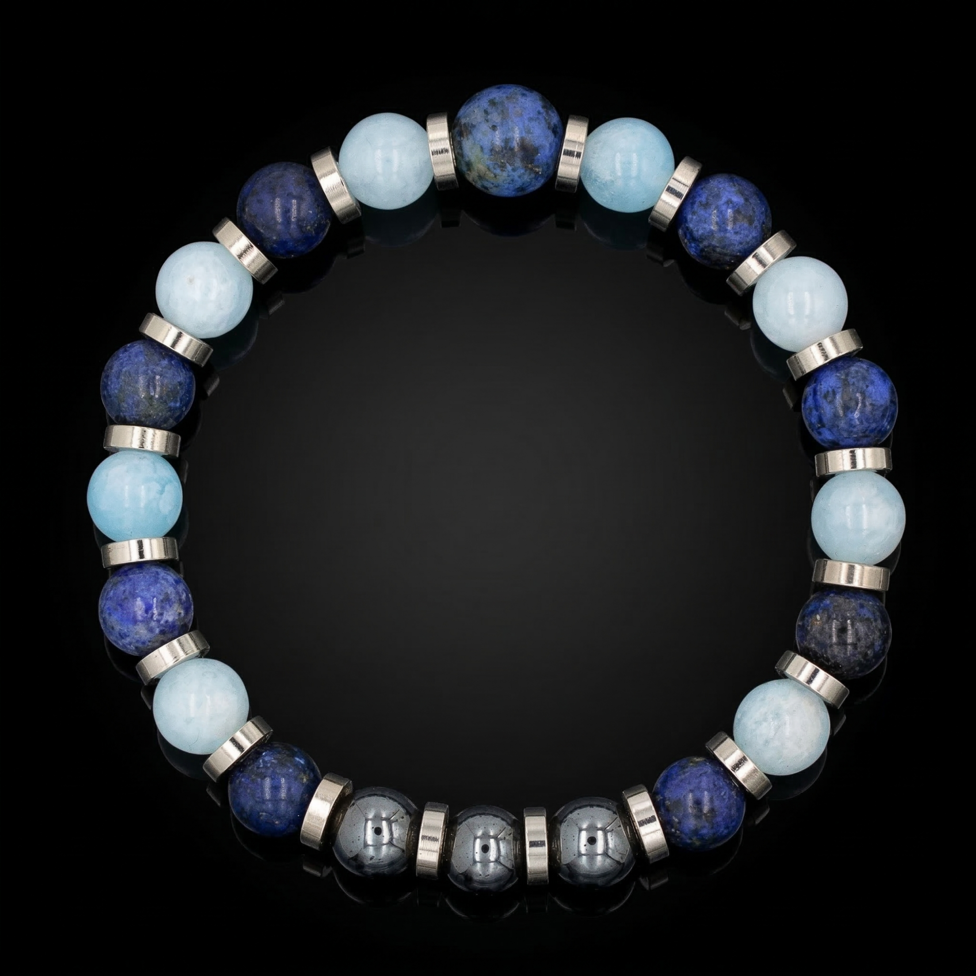 Beyond professional interactions, this bracelet invites personal transformation. Dumortierite Blue aids in self-reflection and letting go of past burdens, Aquamarine helps address fears and bad habits, and Hematite nourishes your energy potential, supporting your ambitions and endeavors.