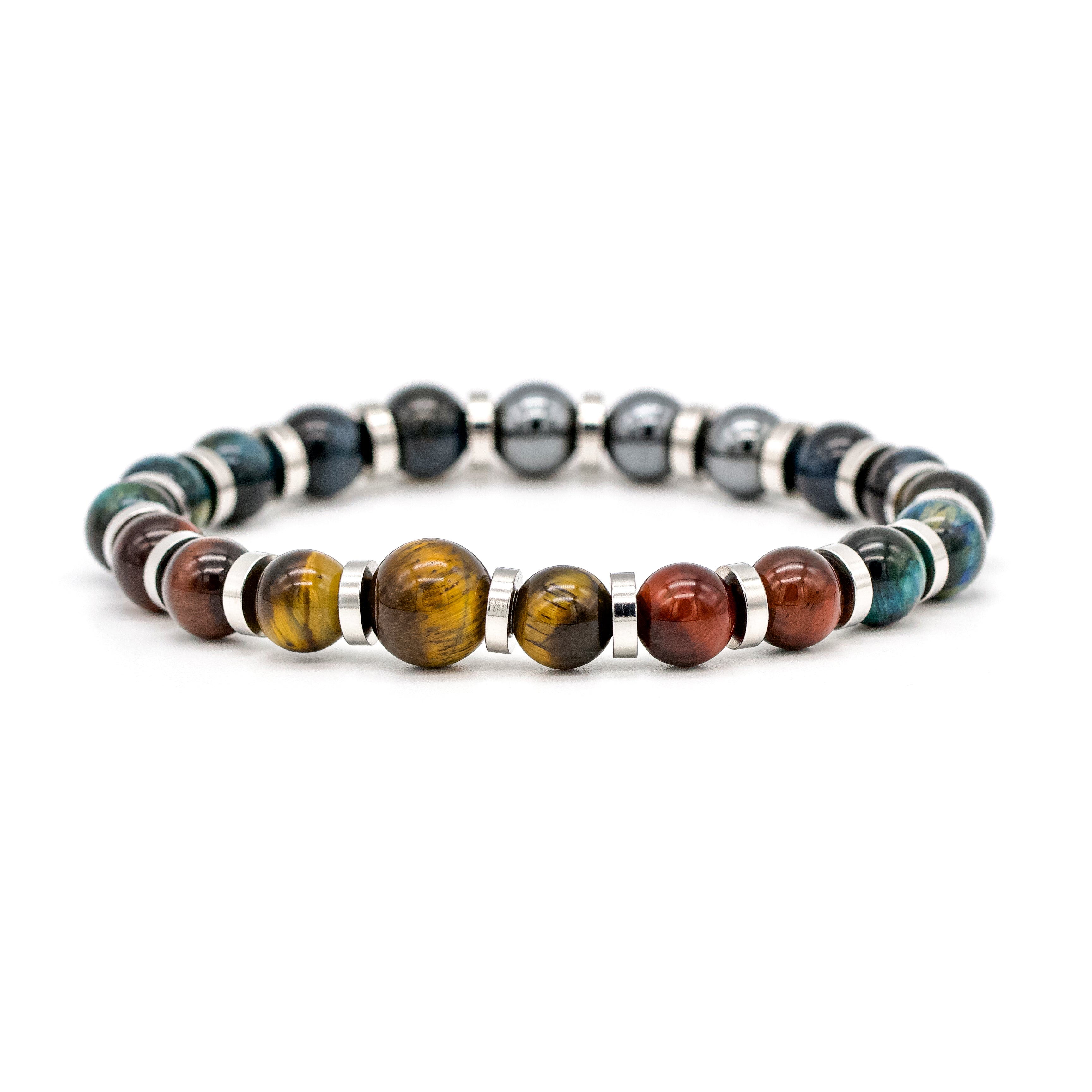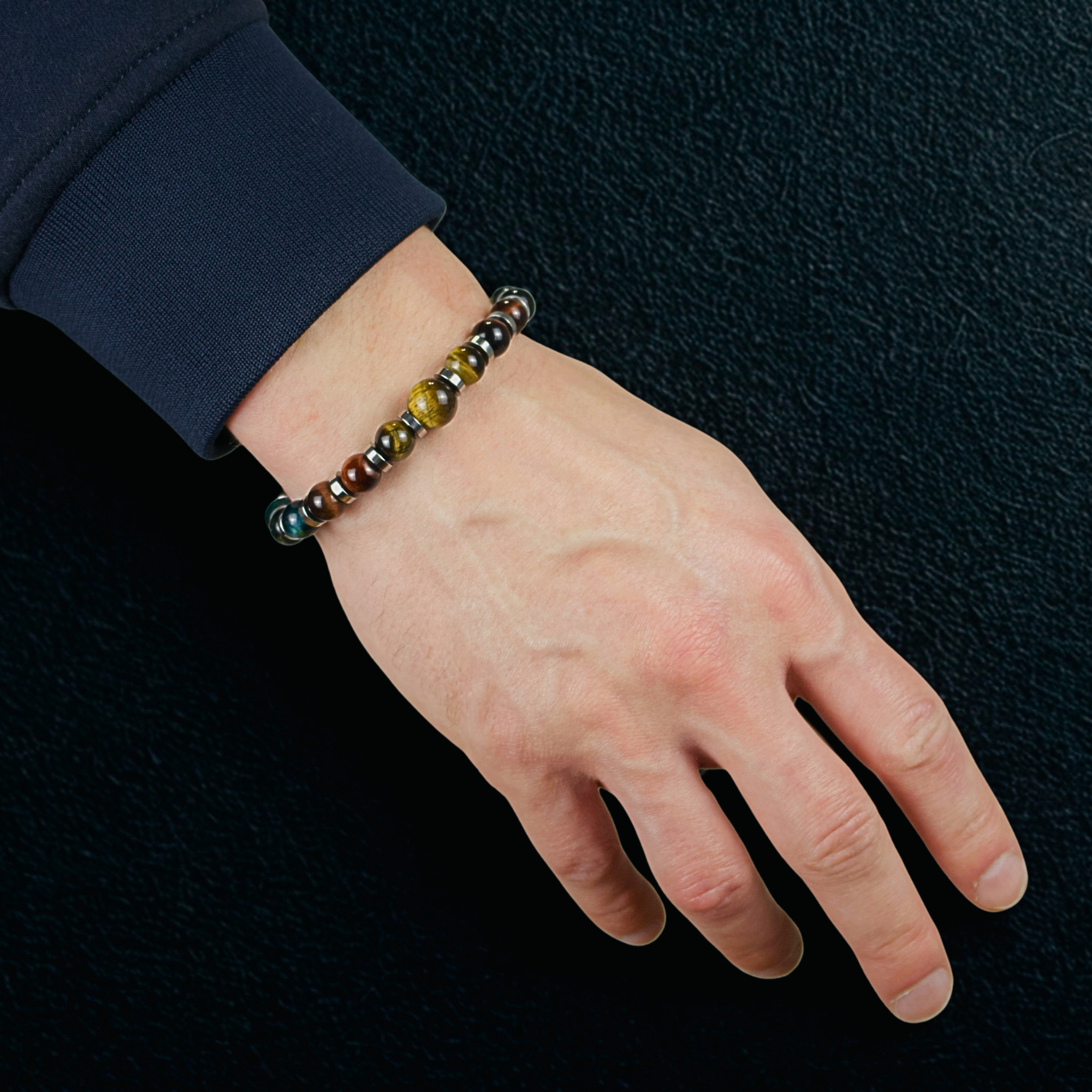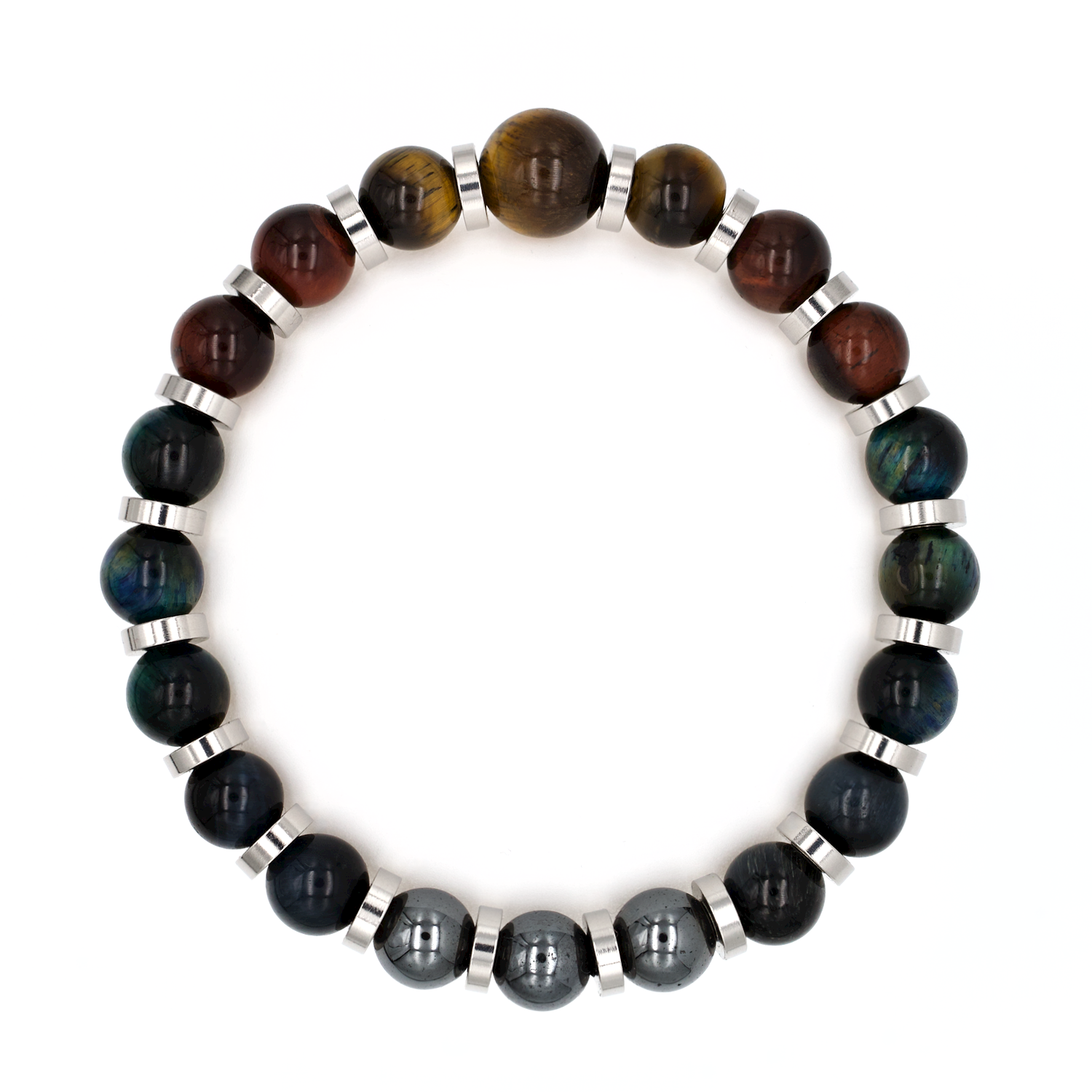 The harmonious blend of these stones offers a comprehensive toolkit for navigating the demanding arenas of business, creativity, and public engagement. Hawkeye and Pietersite amplify audacity and intuition, while Yellow Tiger Eye and Hematite provide grounding, mental clarity, and career growth support. Bull Eye completes the synergy by enhancing emotional balance and focus.