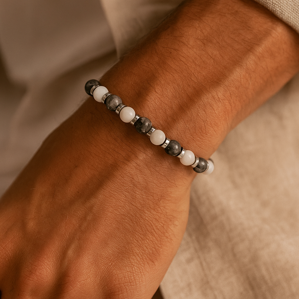Experience a refined blend of Larvikite, Belomorite (Moonstone), and Hematite in our Men’s Strength and Wisdom Bracelet. Each stone is thoughtfully selected to represent resilience, clarity, and poise, creating a stylish accessory suited to both personal and professional settings.
