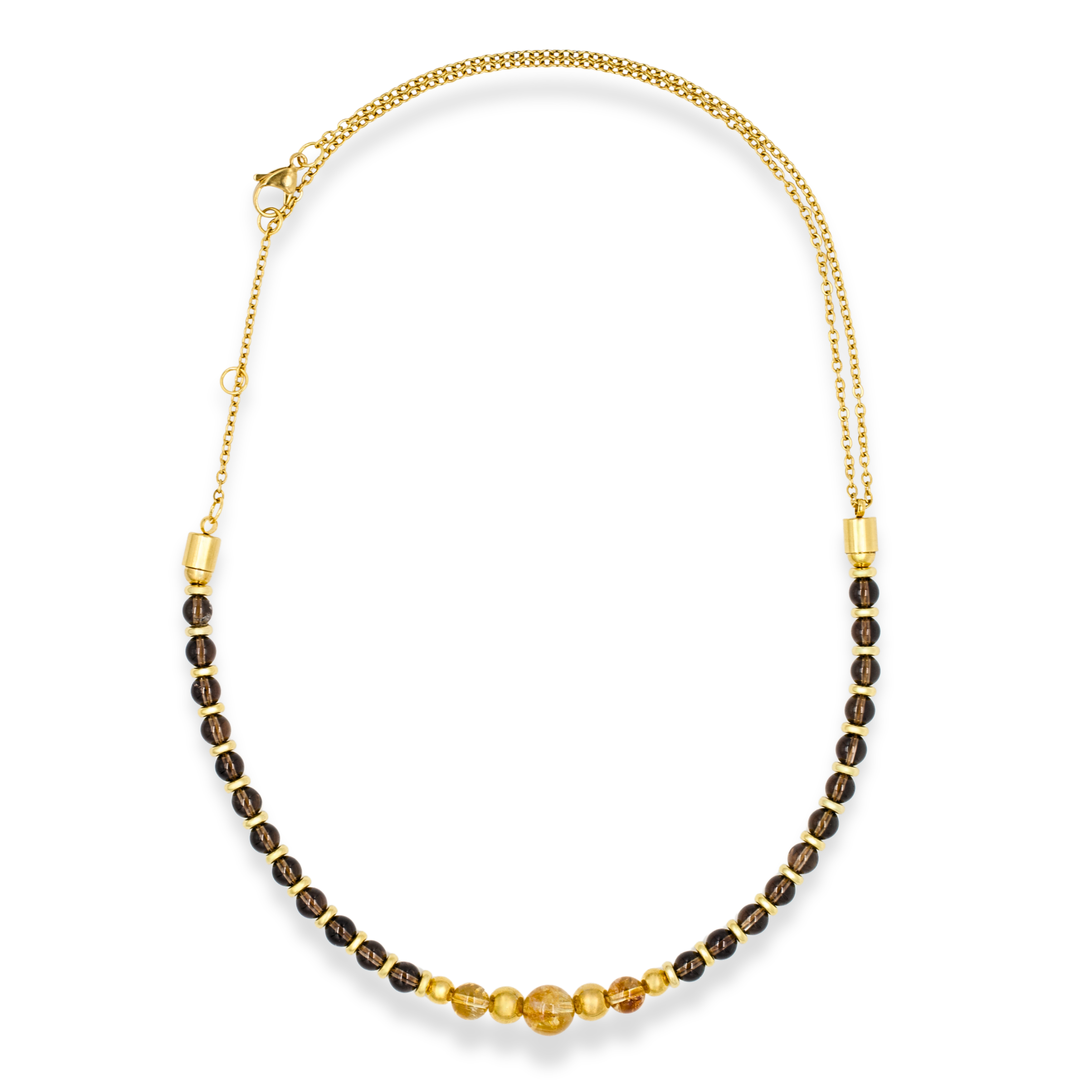 Designed to match the mindset of high-performers, this men's necklace merges polished aesthetics with high-vibrational materials. The placement of citrine in the center symbolizes the sun — a radiant source of energy — surrounded by smoky quartz for balance and quiet confidence. Ideal for daily wear, major meetings, or personal rituals.