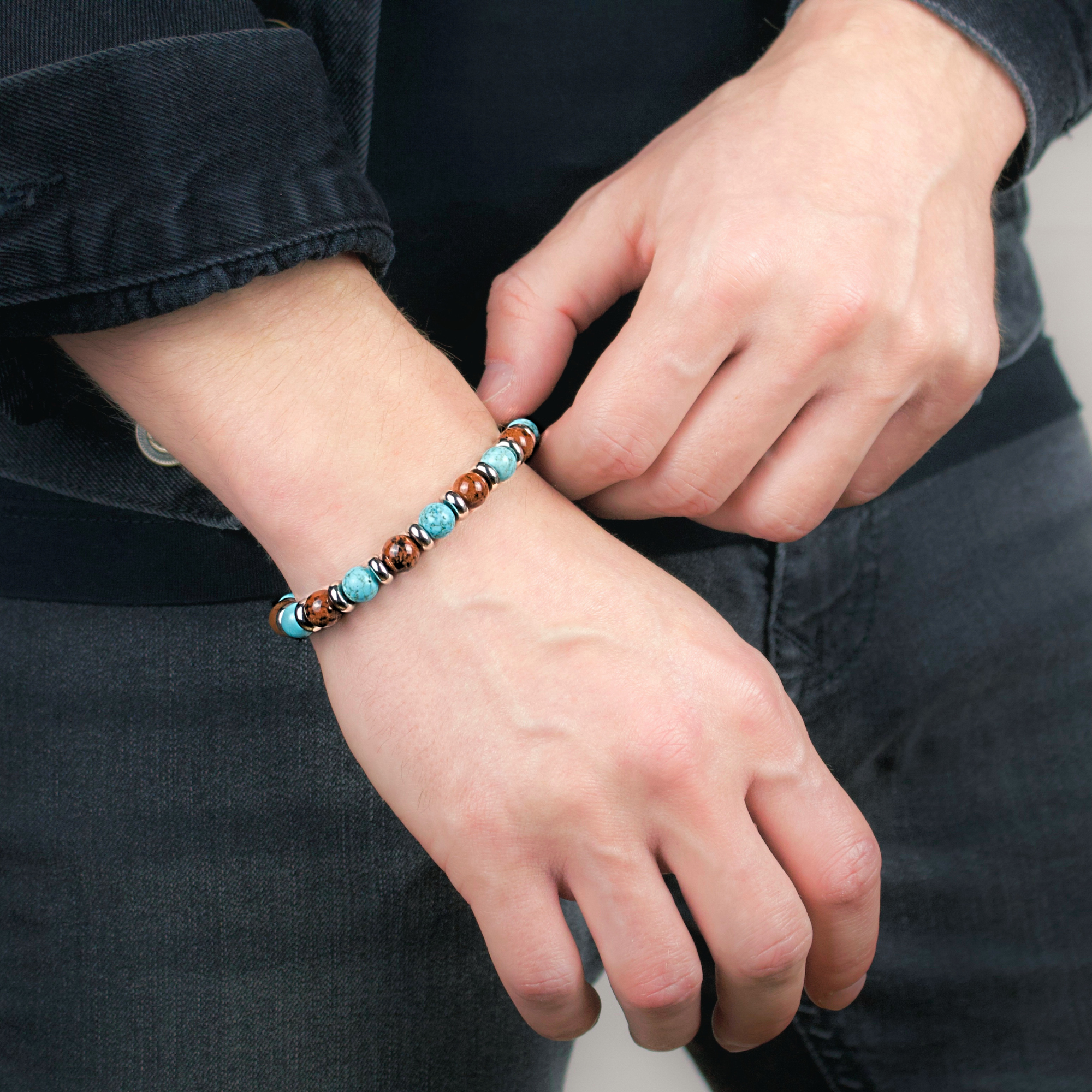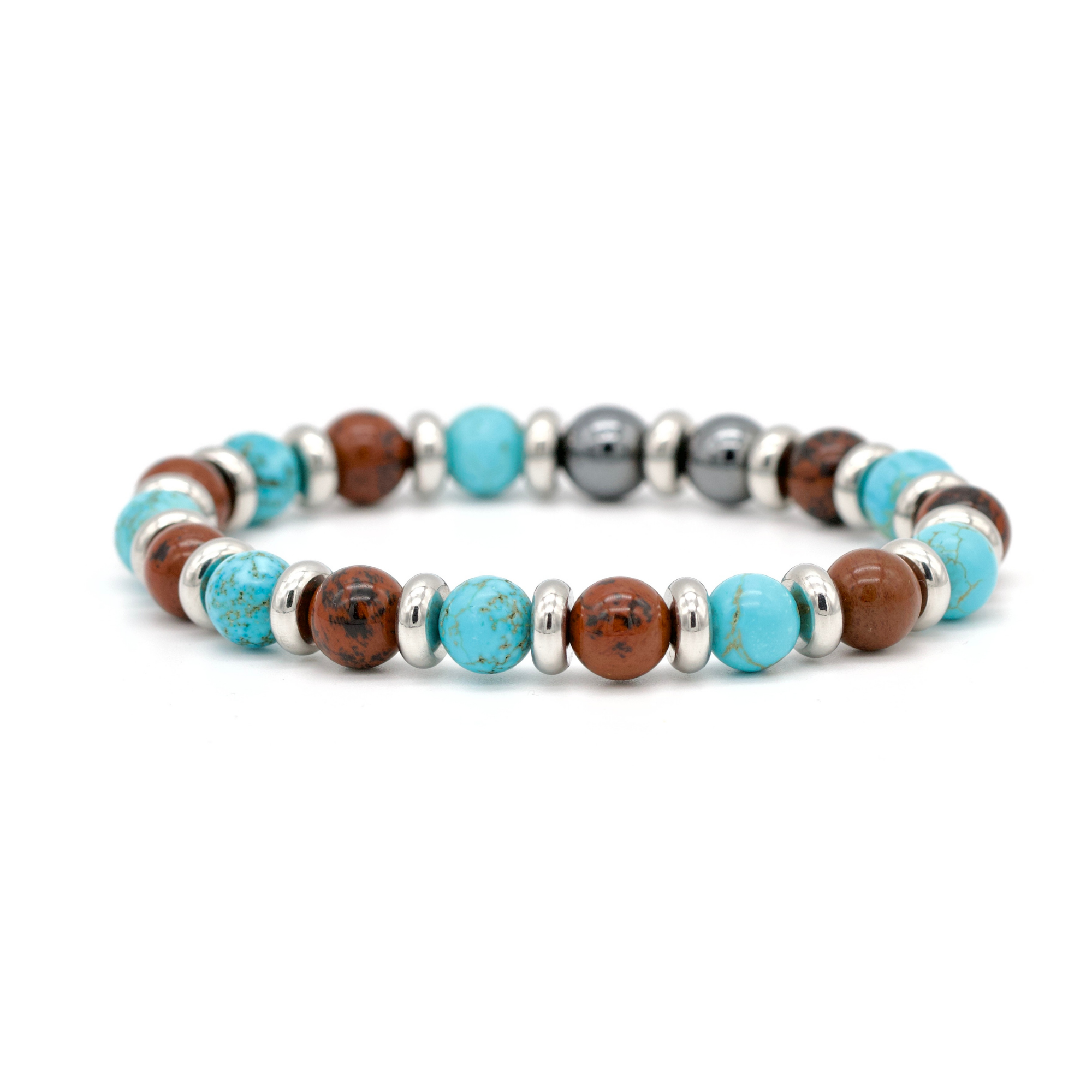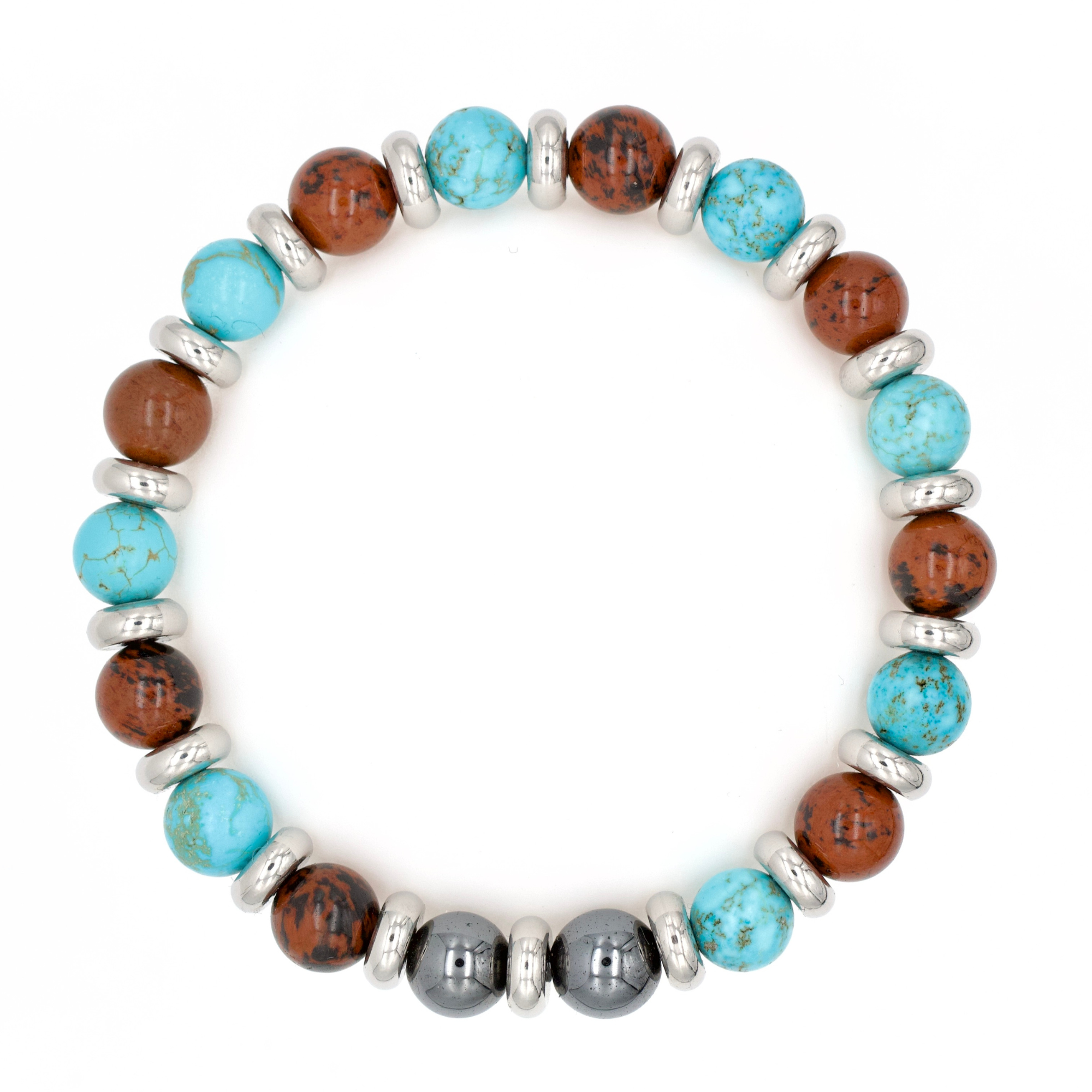 Embrace the harmonious blend of Hematite, Turquoise, and Mahogany Obsidian in this unique bracelet, designed for those who seek balance and protection in their lives. This powerful combination offers a shield against negative energies while promoting personal and professional growth.