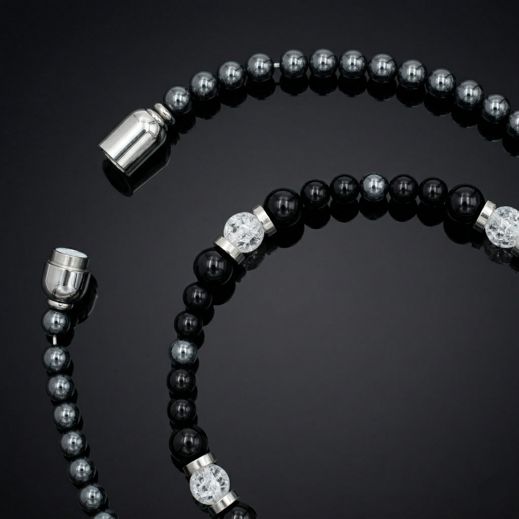 Black Tourmaline and Hematite are often appreciated for their grounding and clarifying associations, helping to foster composed decision-making in competitive environments. Clear Quartz is traditionally linked to enhanced mental acuity, while Onyx is valued for promoting emotional stability—both essential qualities for navigating high-pressure situations. Together, these stones offer a refined balance that resonates with ambition and self-assurance.