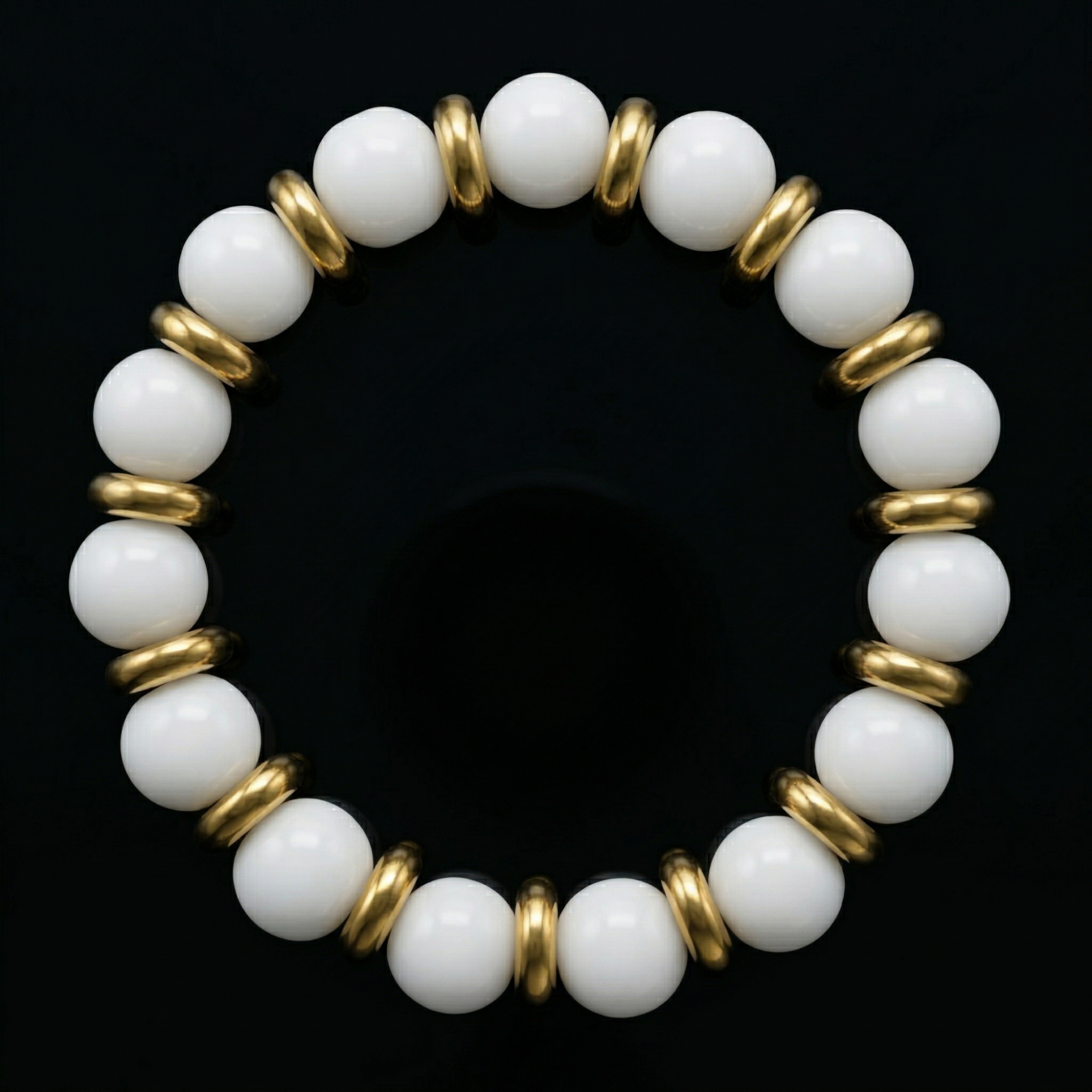 Its clean, white design and radiant golden accents symbolize strength through softness. Ideal for mindful professionals, creatives, and women seeking emotional clarity without chaos, this bracelet pairs effortlessly with both workwear and elevated casuals—becoming a daily ritual of confidence and calm.