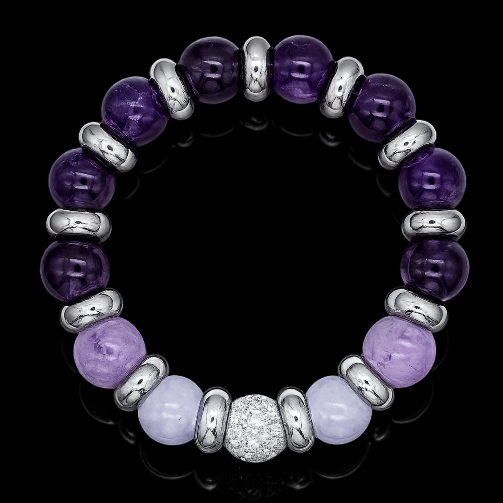 Immerse yourself in a world of spiritual clarity and emotional balance with our expertly crafted bracelet, featuring Chalcedony, Clear Quartz, and Amethyst. This exquisite piece is not just a beautiful accessory but a powerful talisman designed to harmonize your mind, body, and spirit.