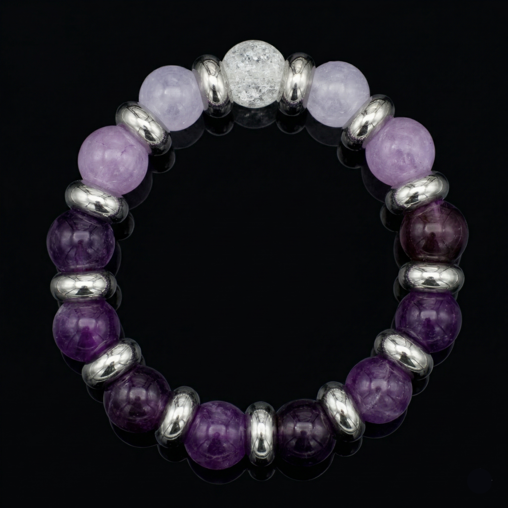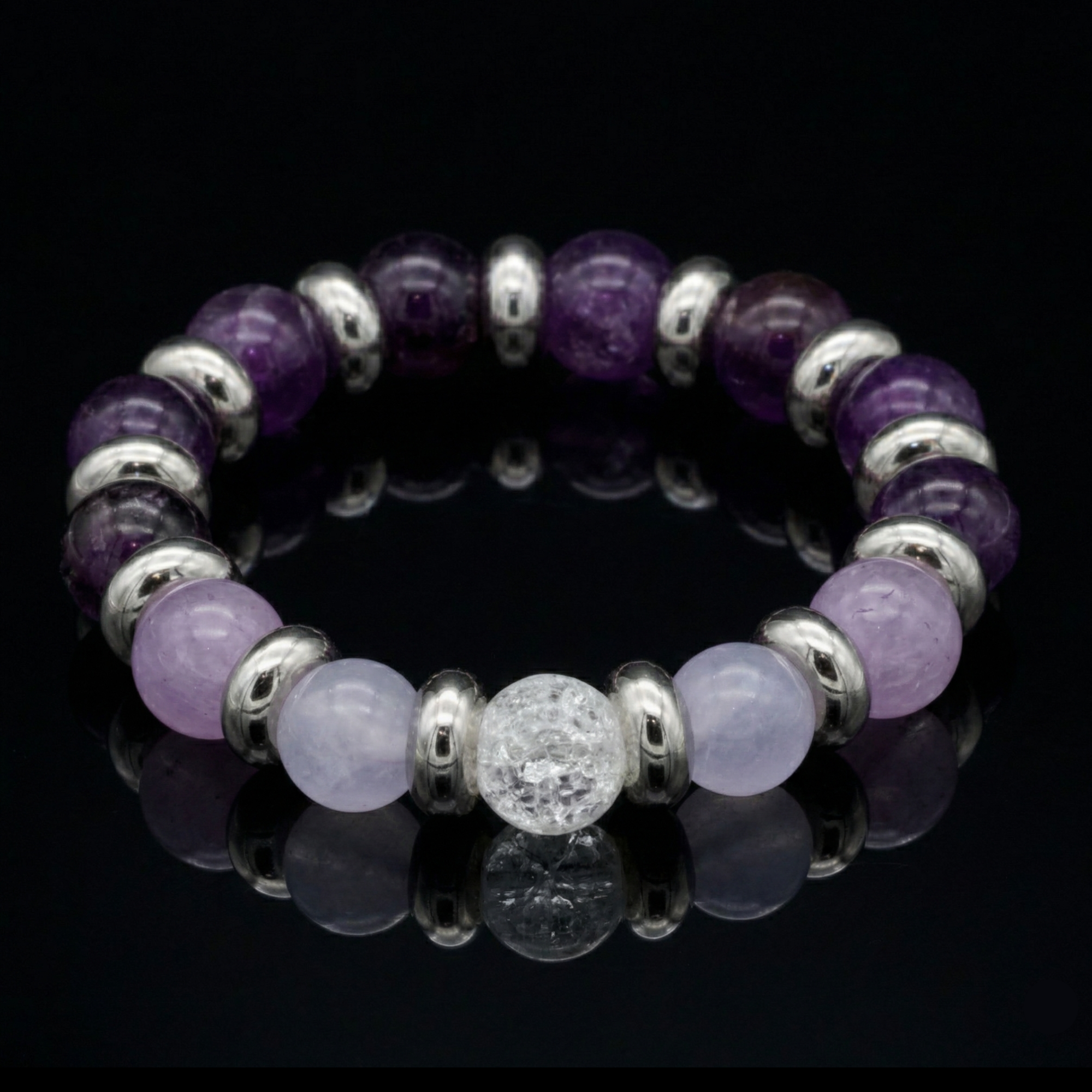 The synergy of Chalcedony, Clear Quartz, and Amethyst creates a unique energetic blend that fosters inner peace, spiritual growth, and mental clarity. Together, these stones generate a calming vibration that helps to balance your emotions and enhance your intuitive abilities. This harmonious combination acts as a spiritual anchor, providing clarity and stability in your daily life.